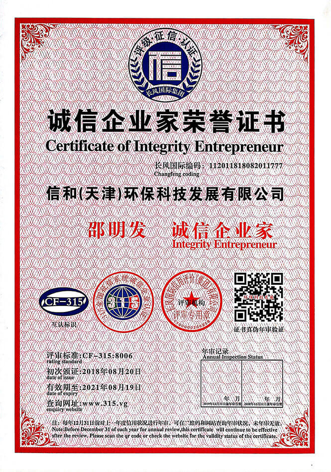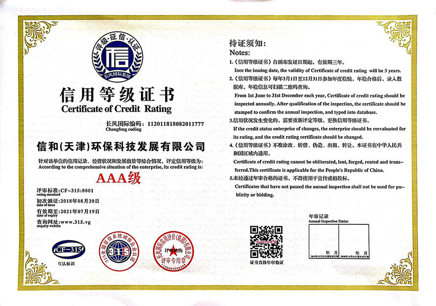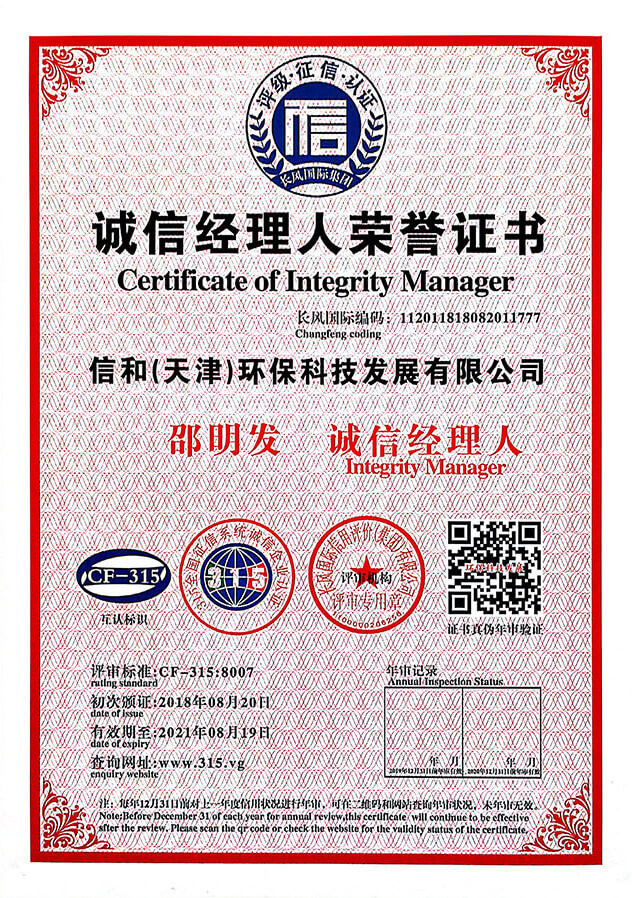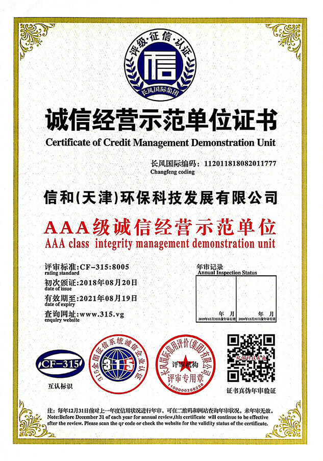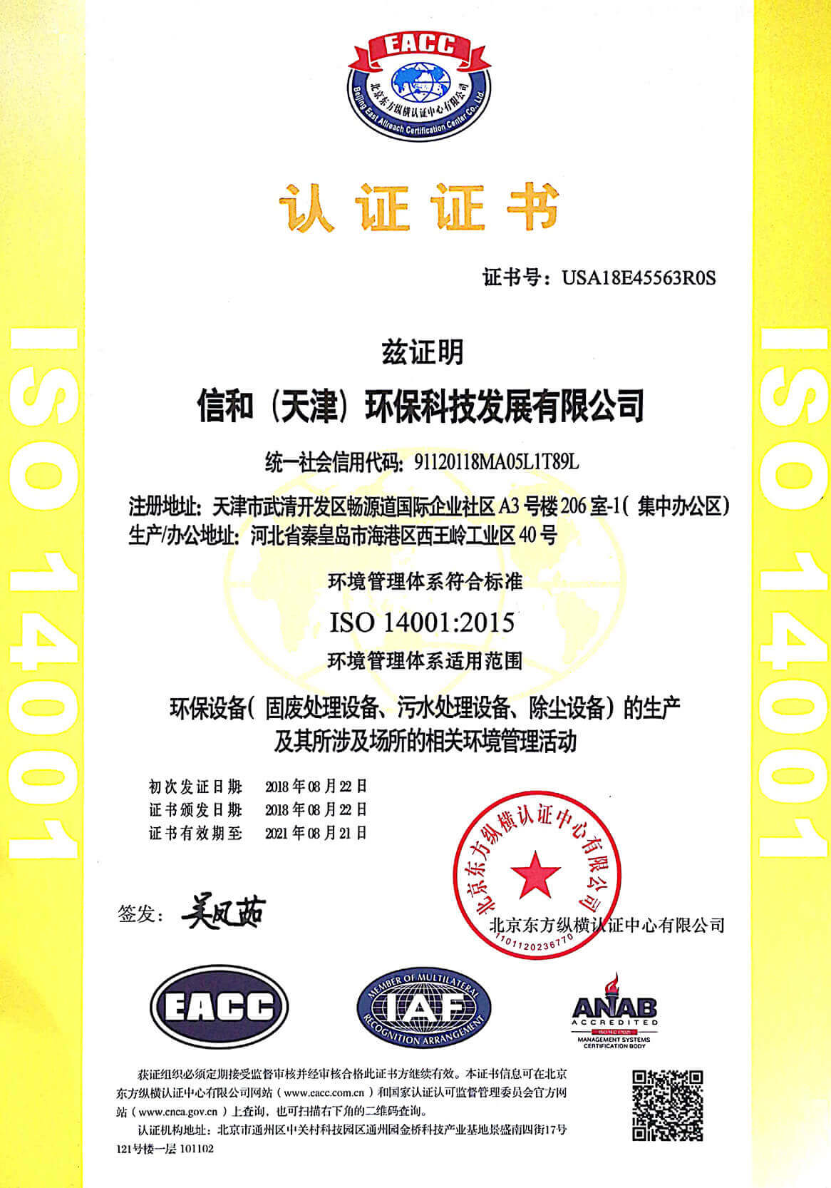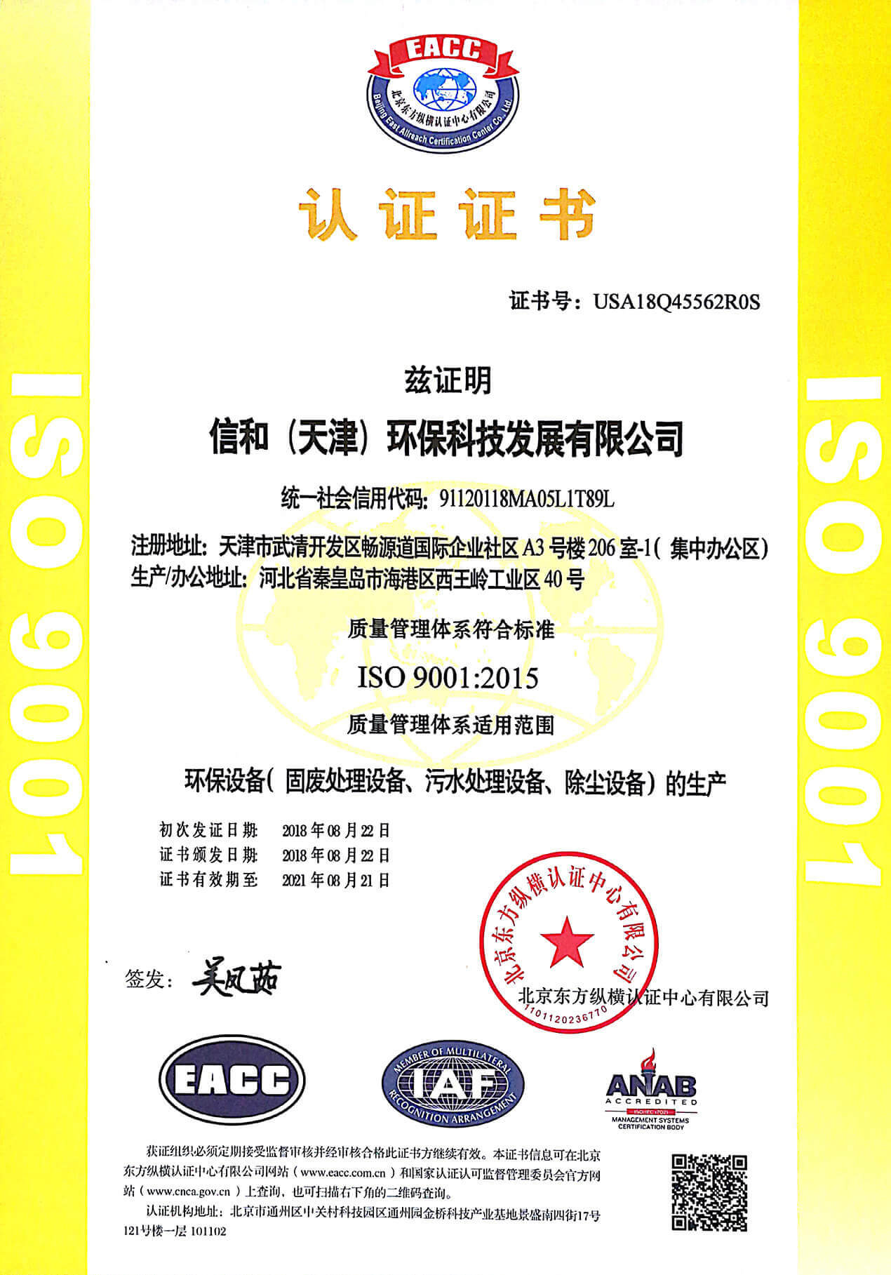 以“專業(yè)、誠信、創(chuàng)新、環(huán)?!睘楹诵睦砟睢I(yè)從事環(huán)保設備研發(fā)的生產型高新企業(yè),為客戶提供專業(yè)的環(huán)保設備。擁有《中華人民共和國進出口資格證》和《中國環(huán)境保護產品認證證書》。產品通過ISO9001質量管理體系認證、ISO4110環(huán)境管理體系認證、ISO18001職業(yè)健康管理體系認證。
