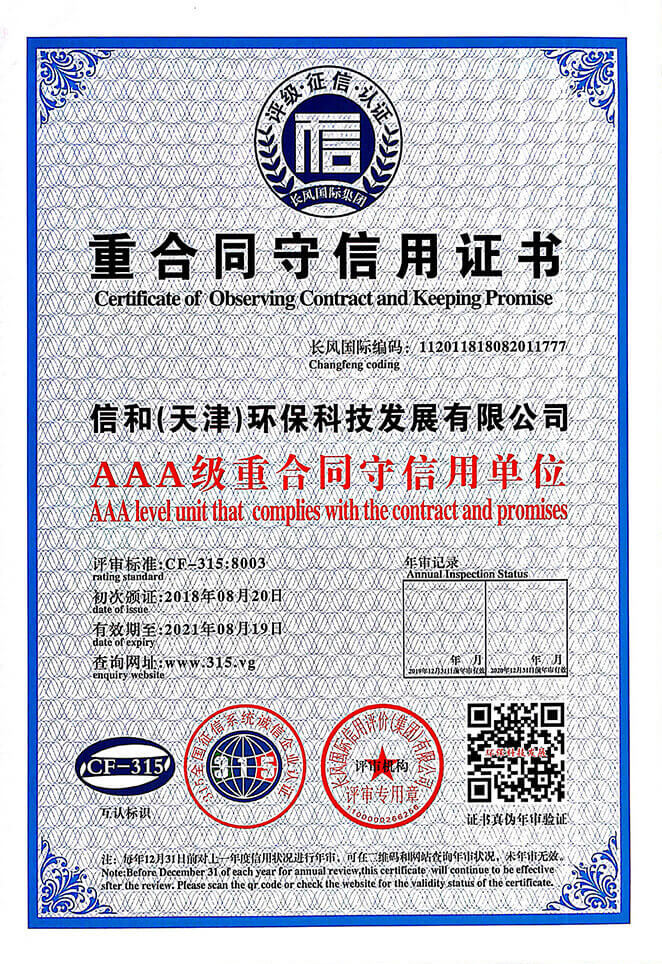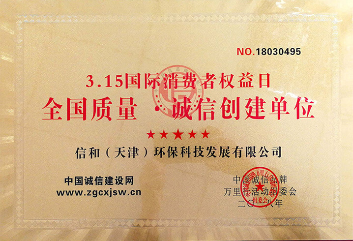 “質量就是生命”。信和重質量、守信用,被中國誠信品牌萬里行推薦“誠信示范單位”、“AAA資信等級”、“AAA級誠信經營示范單位”、“誠信經理人榮譽證書”、“誠信企業(yè)家榮譽證書”、“中國產品質量放心達標企業(yè)”、“誠信品牌聯(lián)盟會員單位”、“中國質量誠信AAA級品牌企業(yè)”、“中國百強優(yōu)秀企業(yè)”、“節(jié)能環(huán)保推廣產品”、“全國科技創(chuàng)新企業(yè)”等榮譽稱號。